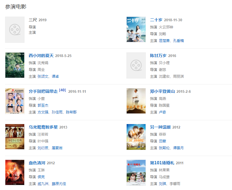 代表作品:最好的我們、武動乾坤之英雄出少年、大唐女巡按、那年夏天