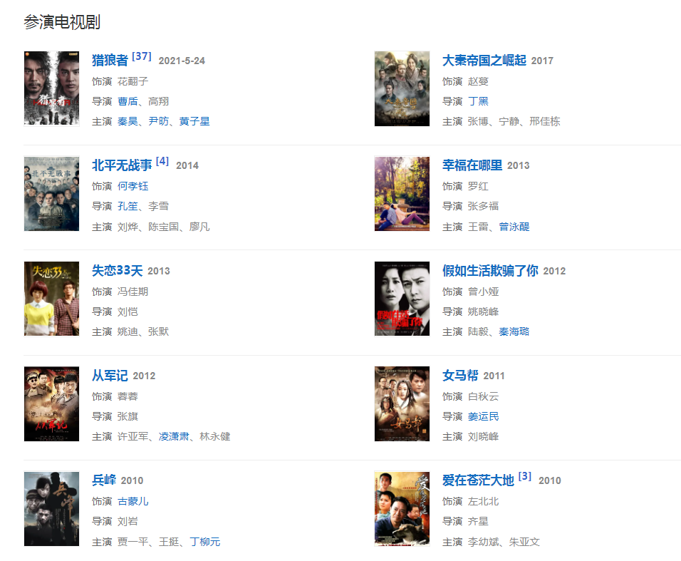2021年5月24日,特別出演的反盜獵劇《獵狼者》播出,她在劇中飾演毅然為愛復(fù)仇、堅韌無畏的花翻子 。