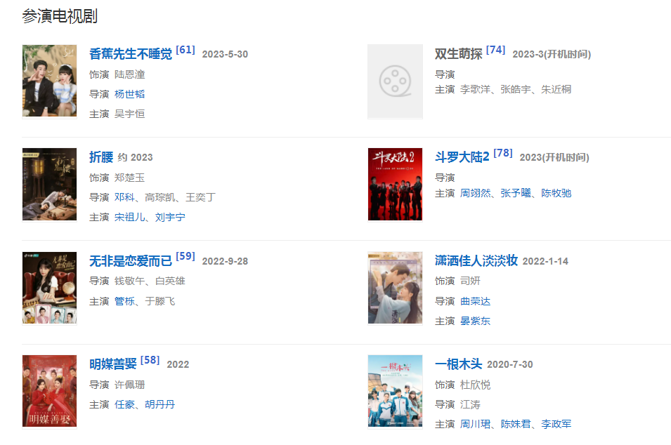 2023年1月,加盟young在春晚;1月21日,參加《古韻新聲春節(jié)》,與何泓姍、沈月合唱歌曲《賀新歲》 ;1月31日,友情出演的電視劇《折腰》開機(jī)。2月20日,參加《2023年藏歷水兔新年聯(lián)歡晚會》,并和于朦朧表演歌伴舞《我們都是追夢人》;3月5日,參加的紀(jì)念毛澤東等老一輩革命家為雷鋒同志題詞六十周年文藝晚會《新時代 新雷鋒》在湖南衛(wèi)視播出,并演唱歌曲《學(xué)習(xí)雷鋒好榜樣》 ;5月,參演的《斗羅大陸2》開機(jī);5月30日,主演的都市偶像甜寵劇《香蕉先生不睡覺》在優(yōu)酷播出。