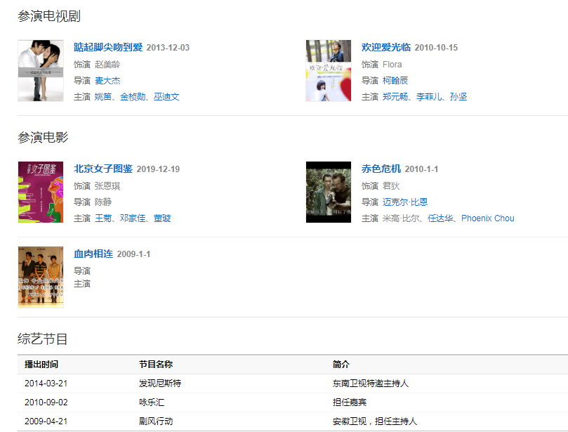 2019年,與王菊、鄧家佳聯(lián)袂主演優(yōu)酷季播電影《北京女子圖鑒》,并在《再見(jiàn)愛(ài)情》篇中飾演張恩琪。