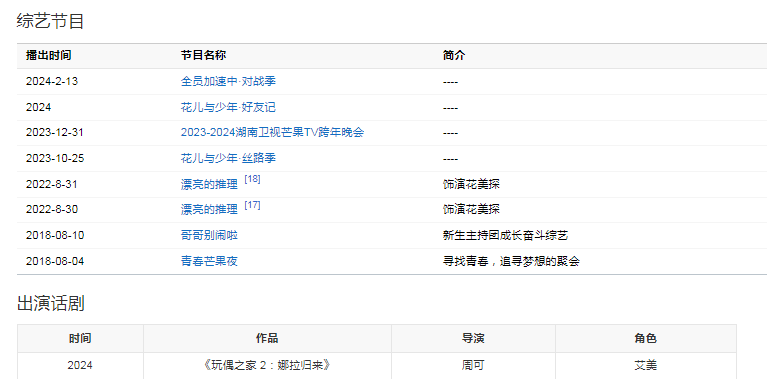 2024年2月3日,參加《2024湖南衛(wèi)視芒果TV春節(jié)聯(lián)歡晚會(huì)》,表演《接龍迎春拜新年》;2月13日,參加綜藝節(jié)目《全員加速中·對(duì)戰(zhàn)季》播出;5月,參加《花兒與少年·好友記》播出。5月25日,主演的古裝輕喜劇《南城宴》播出,在劇中飾演從事于萬(wàn)事閣的俠女拂曉 。8月7日,主演的話(huà)劇《玩偶之家 2:娜拉歸來(lái)》北京站第一場(chǎng)演出結(jié)束。8月7日-11日,主演的話(huà)劇《玩偶之家 2:娜拉歸來(lái)》在北京天橋藝術(shù)中心演出五場(chǎng)。8月6日,主演的古裝仙俠劇《衡門(mén)有狐-臨江仙》殺青。