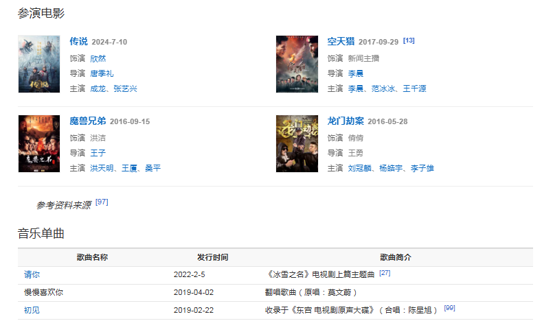 2025年3月,參加芒果TV綜藝《乘風(fēng)2025》;4月28日,出演的東方俠情群像劇《淮水竹亭》播出。