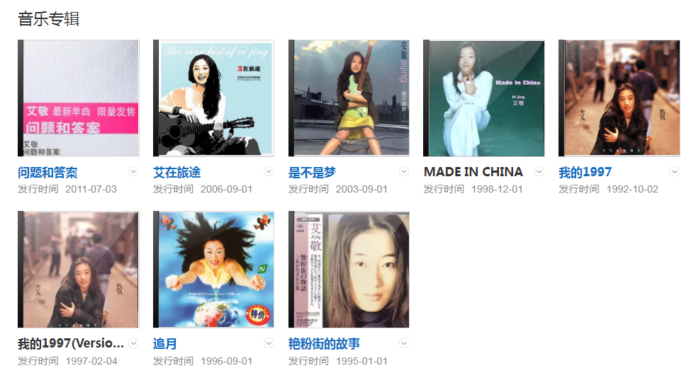 代表作品:我的1997、《艷粉街的故事》、《追月》、《中國制造》、《是不是夢》、《紐約紐約》、問題和答案、《愛人