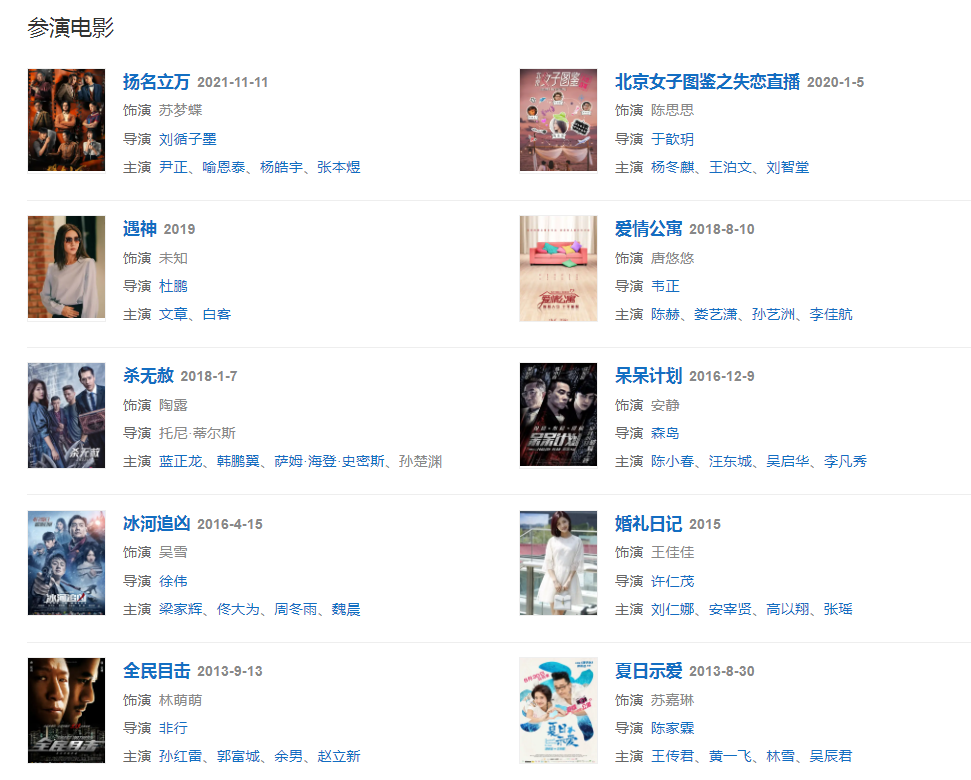 2013年,參演犯罪懸疑電影《全民目擊》,并憑借該片獲得第32屆大眾電影百花獎最佳女配角獎。