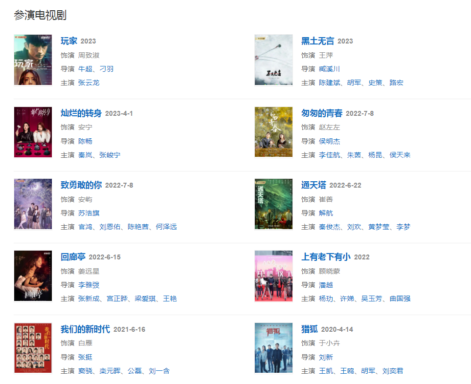 20221月,與楊玏主演家庭劇《上有老下有小》開機(jī)  ;同年,與陳建斌、胡軍等人主演的社會懸疑刑偵劇《黑土無言》開機(jī),在劇中飾演嚴(yán)紅橋的前妻王萍。
