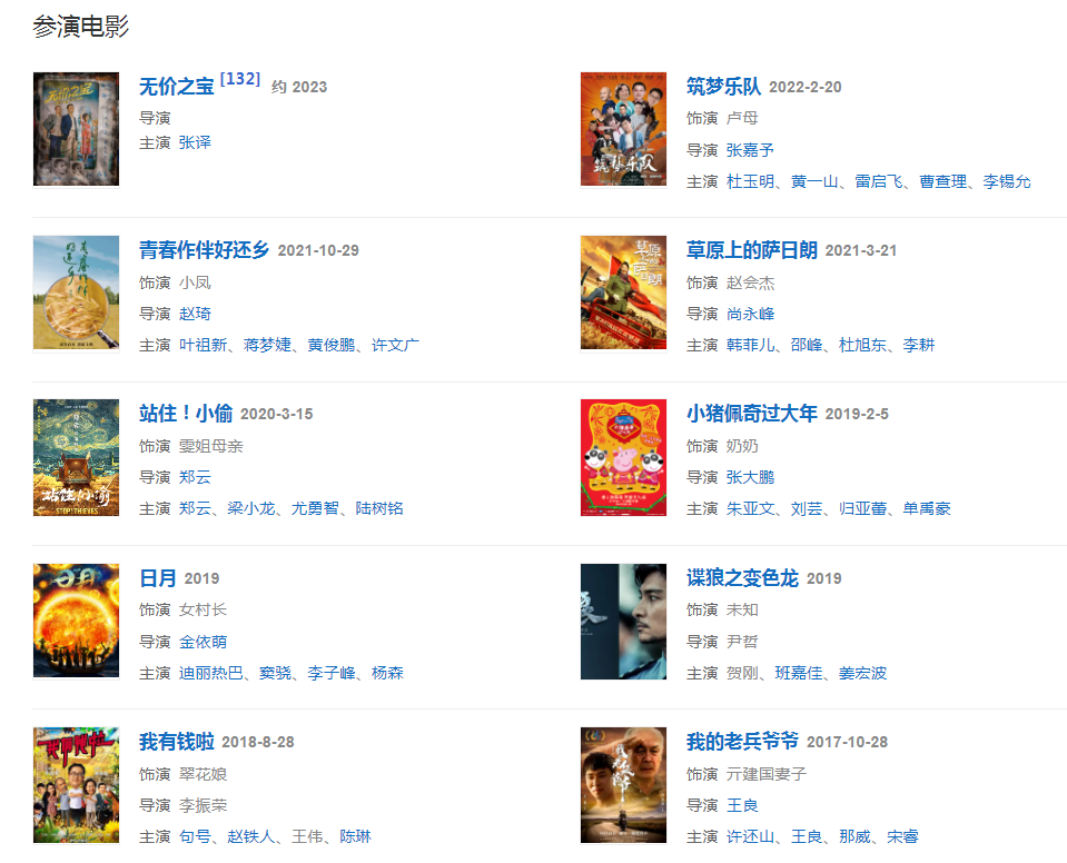 2005年參演賀歲片《別拿豆包不當(dāng)干糧》飾演劉翠翠。