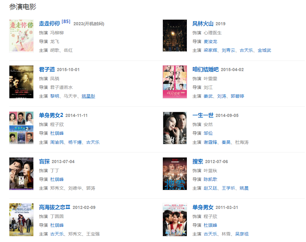 代表作品:咱們結(jié)婚吧、倚天屠龍記、青紅、十七歲的單車(chē)、南京!南京!、單身男女、搜索、一生一世