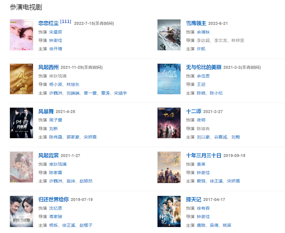 2017年,憑借仙俠劇《仙劍云之凡》提名華鼎獎最佳女演員,而其主演的玄幻劇《擇天記》則取得了全國同時段電視劇收視冠軍。