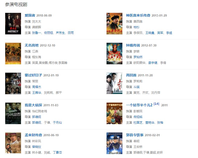 代表作品:太平天國、大宅門第二部、梅艷芳菲