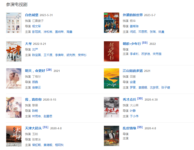 代表作品:大唐雙龍傳、龍門鏢局、春江英雄之秀才遇到兵、暗黑者、天下糧倉、我們生活的年代