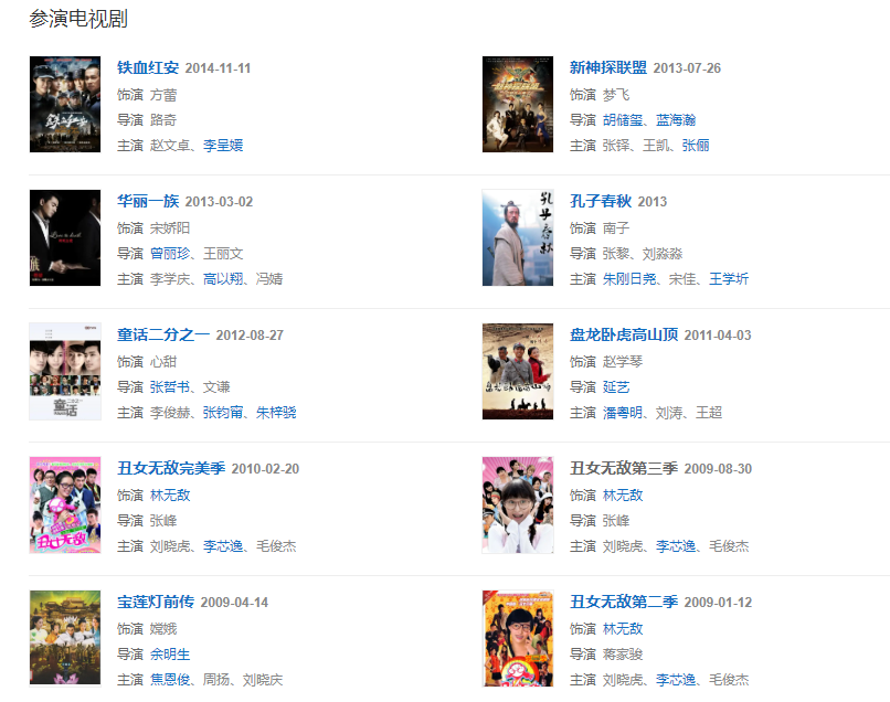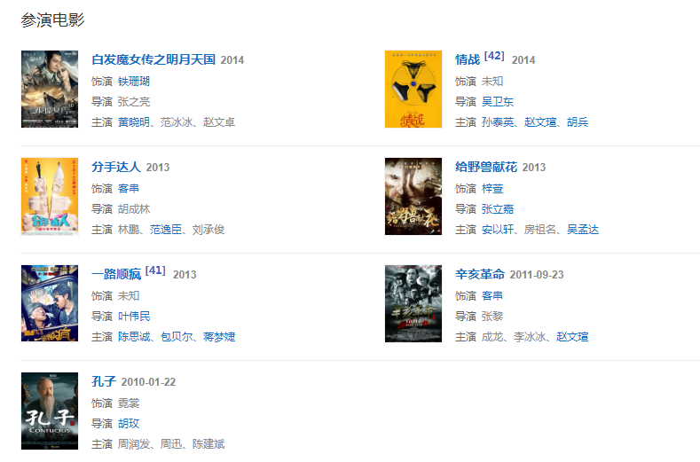 代表作品:丑女無敵、華麗一族、寶蓮燈前傳、給野獸獻花、孔子春秋、盤龍臥虎高山頂