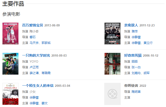 代表作品:一個(gè)陌生女人的來(lái)信、我的青春誰(shuí)做主、你和我的傾城時(shí)光、暮白首