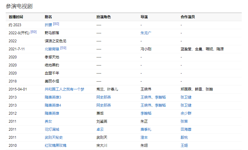 2004年,主演電視劇《誰(shuí)主沉浮》。2005年,主演電視劇《寶蓮燈》,飾演王母娘娘。