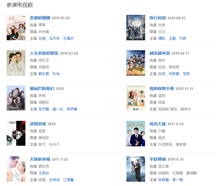 代表作品:執(zhí)行利劍、紅箭、錦繡緣華麗冒險(xiǎn)、緣來幸福、熱血、團(tuán)圓、親愛的婚姻、我的保姆手冊、風(fēng)光大嫁、黛玉傳
