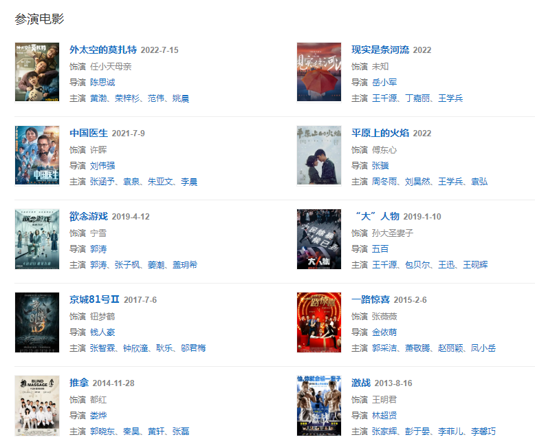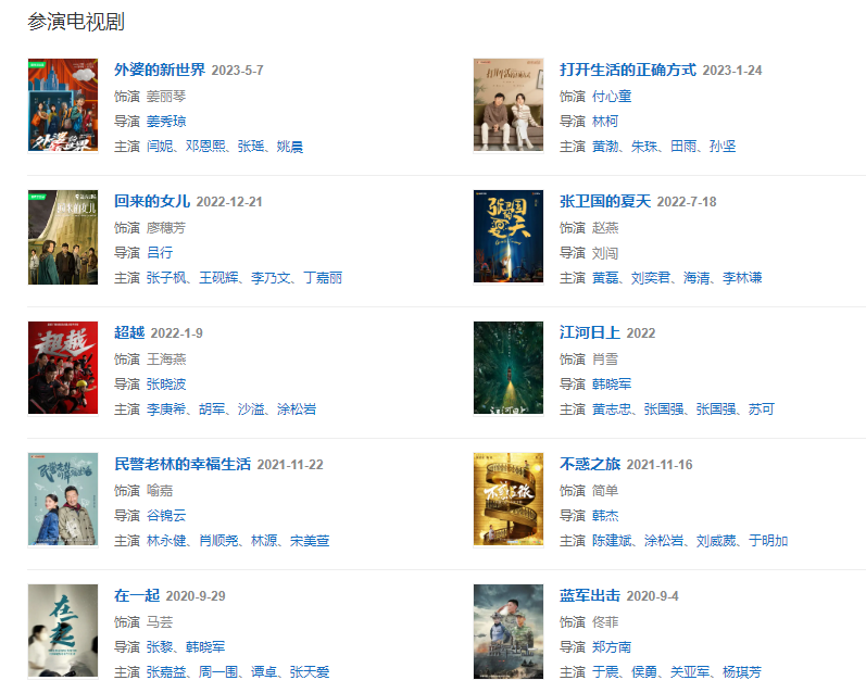 2022年1月9日,特別出演的勵(lì)志體育競(jìng)技劇《超越》在央視一套播出;5月6日,與黃渤、朱珠等領(lǐng)銜主演的都市劇《打開(kāi)生活的正確方式》宣布?xì)⑶?/span> 。