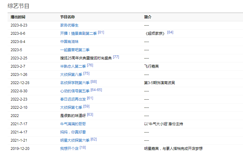 2022年1月26日,參加的《大偵探第七季》發(fā)布定檔海報。 2022年,加盟芒果TV打造的社交觀察類真人秀《春日遲遲再出發(fā)》。 2月10日,參與錄制的芒果TV《大偵探第七季》開播。5月29日,參加的綜藝《是很熟的味道呀》官宣陣容。