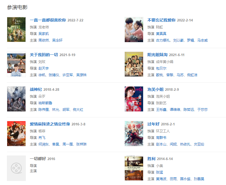 2022214日,特別出演的電影《不要忘記我愛你》上映。520日,參加的勵志成長音樂競演節(jié)目《乘風破浪第三季》上線。