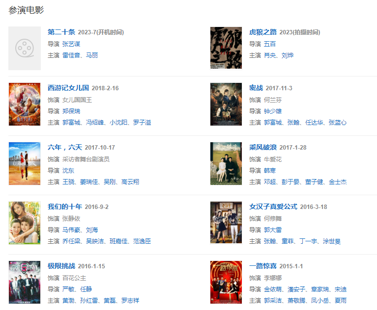 2016年,擔任河北省旅游形象大使。2017年,憑借電影《乘風破浪》獲得第24屆北京大學生電影節(jié)最受大學生歡迎女演員獎;而其主演的古裝劇《楚喬傳》則成為了中國內地首部在播期間網(wǎng)絡播放量突破400億次的電視劇。