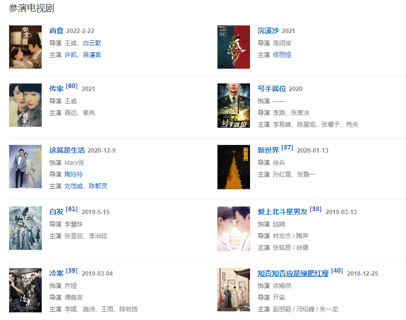 2017年,參演鞠覺亮執(zhí)導的古裝劇《孤芳不自賞》,在劇中飾演“張貴妃”一角 。2019年,參演古裝劇《白發(fā)》 。
