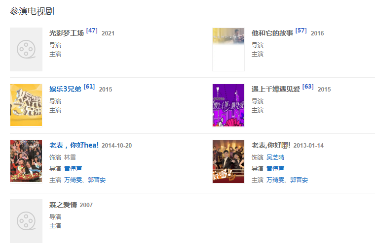 2014年參加《超齡打工假期》。參演紀(jì)錄片《燭光晚餐》。