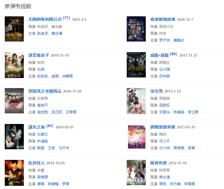 代表作品:倚天屠龍記,新白娘子傳奇,表錯七日情,婚姻勿語,碧海情天