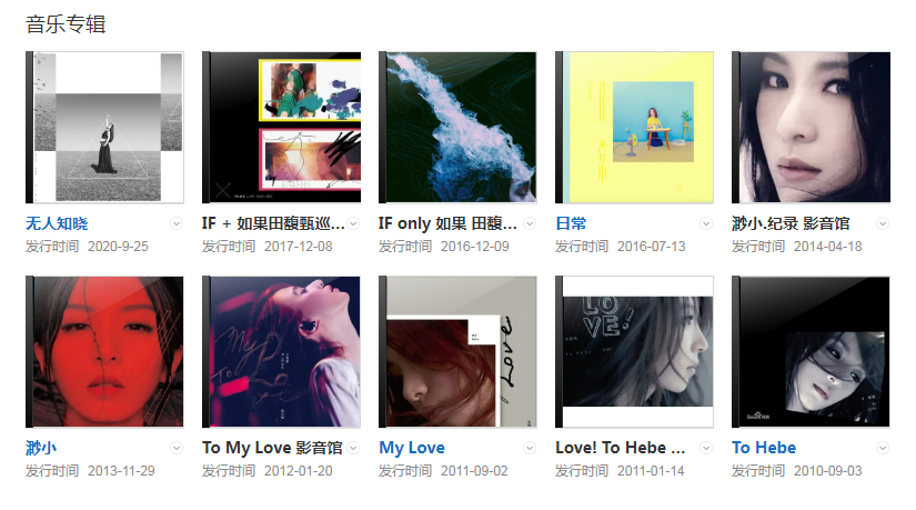 代表作品:Love!、寂寞寂寞就好、你太猖狂、MY LOVE、還是要幸福、魔鬼中的天使、你就不要想起我、不醉不會(huì)、小幸運(yùn)、愛(ài)了很久的朋友、懸日、無(wú)人知曉