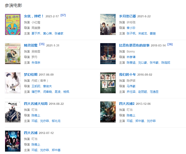 2015317日,參演的古裝劇《少年四大名捕》在湖南衛(wèi)視播出 ;同年主演民國愛情劇《戴流蘇耳環(huán)的少女》  。