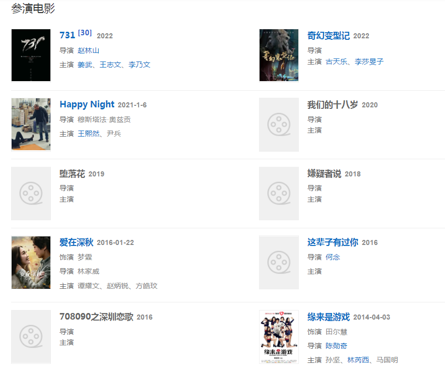 2016年主演的愛情電影《愛在深秋》上映;加盟何念導(dǎo)演的電影《這輩子有過你》