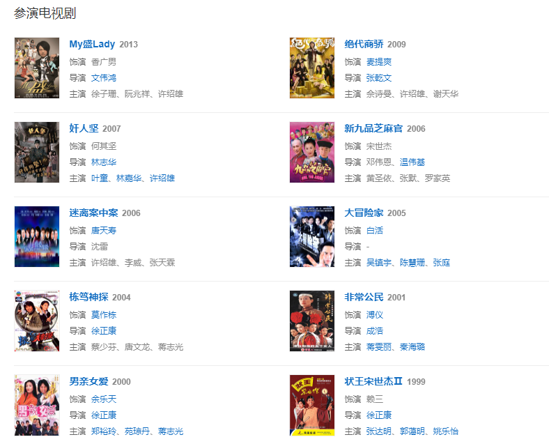 代表作品:秋前算賬、My盛Lady、男親女愛(ài)、狀王宋世杰Ⅱ