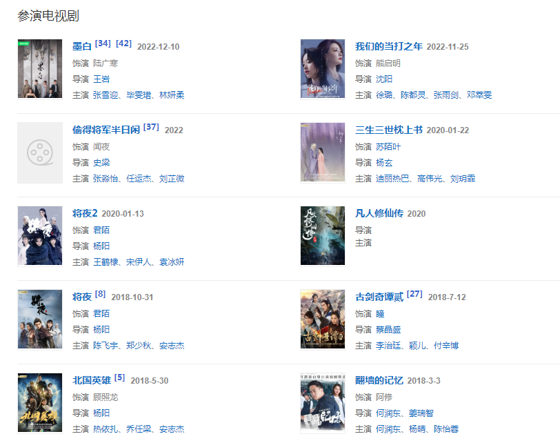 代表作品:斗魚、斗魚Ⅱ、軍雞、單身公主相親記、花木蘭傳奇、將夜、將夜2、三生三世枕上書、談判官、十二生肖傳奇