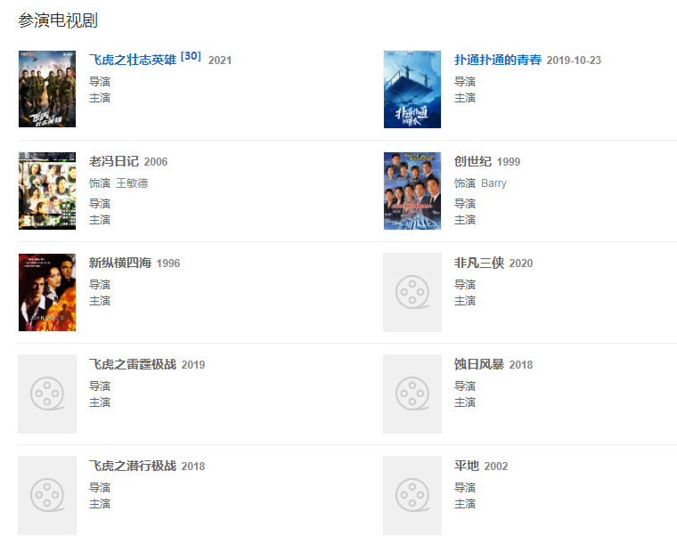 代表作品創(chuàng)世紀(jì)、飛虎、花旗少林