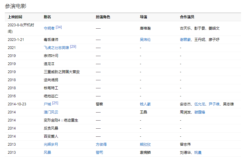 2010年7月,參演爾冬升執(zhí)導(dǎo)的動作警匪片《槍王之王》,飾演一名神秘富豪。