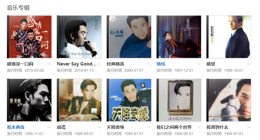 代表作品:義不容情、我本善良、流金歲月、火玫瑰、今生無(wú)悔、隨緣、說(shuō)謊、從未試過(guò)擁有、你把我的女人帶走
