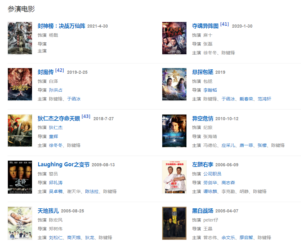 2015年,陳鍵鋒繼續(xù)出演《封神英雄榜2》,隨后獲得亞洲影響力東方盛典亞洲影響力時尚先生;