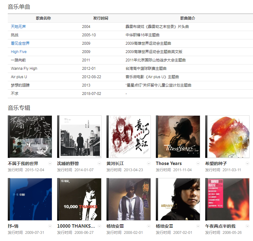 2006年5月26日以“高齡新人”身份推出個人同名首張專輯《楊培安——午夜兩點(diǎn)半的我》,憑借專輯中的《我相信》一曲打響知名度 。