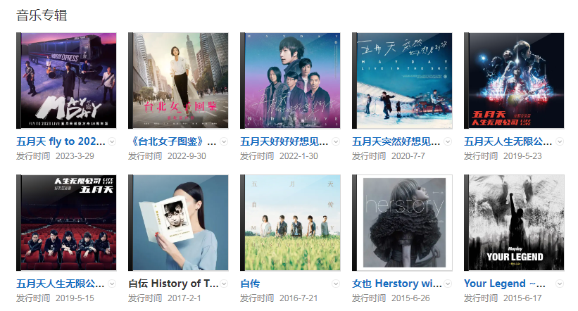 代表作品:溫柔、倔強(qiáng)、突然好想你、知足、戀愛ing、擁抱、我不愿讓你一個人、你不是真正的快樂、后來的我們、諾亞方舟、天使、憨人、如煙、后青春期的詩、傷心的人別聽慢歌、步步、如果我們不曾相遇