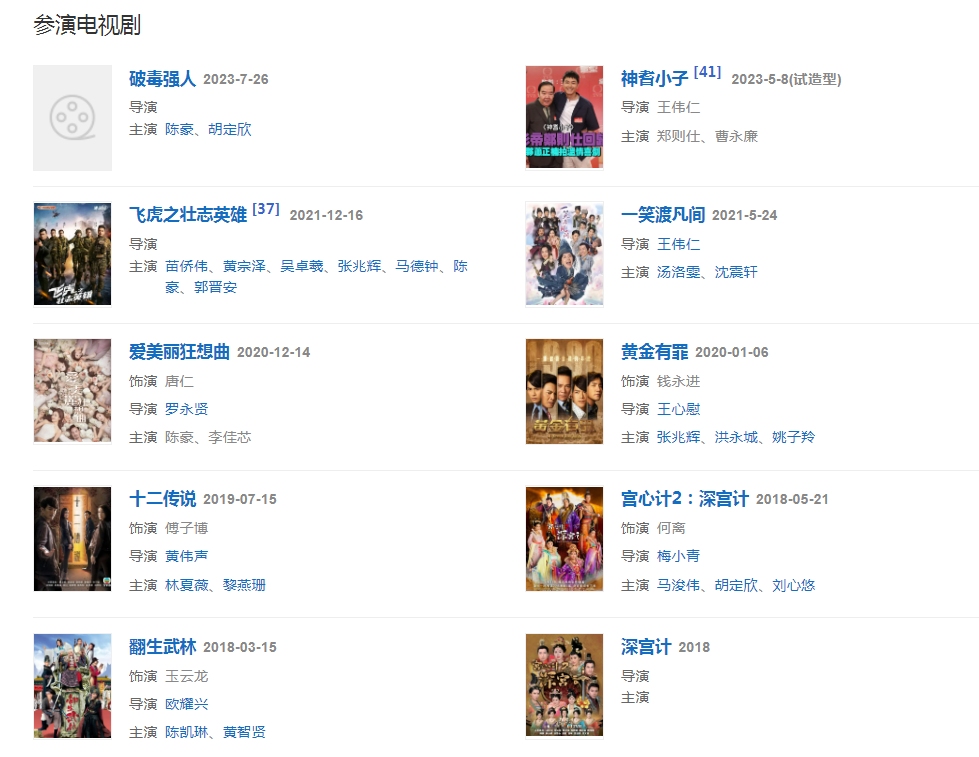 代表作品:《戀愛(ài)自由式》《怪俠一枝梅》《法證先鋒3》《當(dāng)旺爸爸》《幕后玩家》