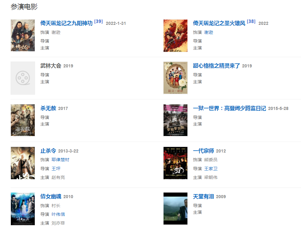 2022年,參演電影《倚天屠龍記之圣火雄風(fēng)》。參演電影《倚天屠龍記之九陽神功》。