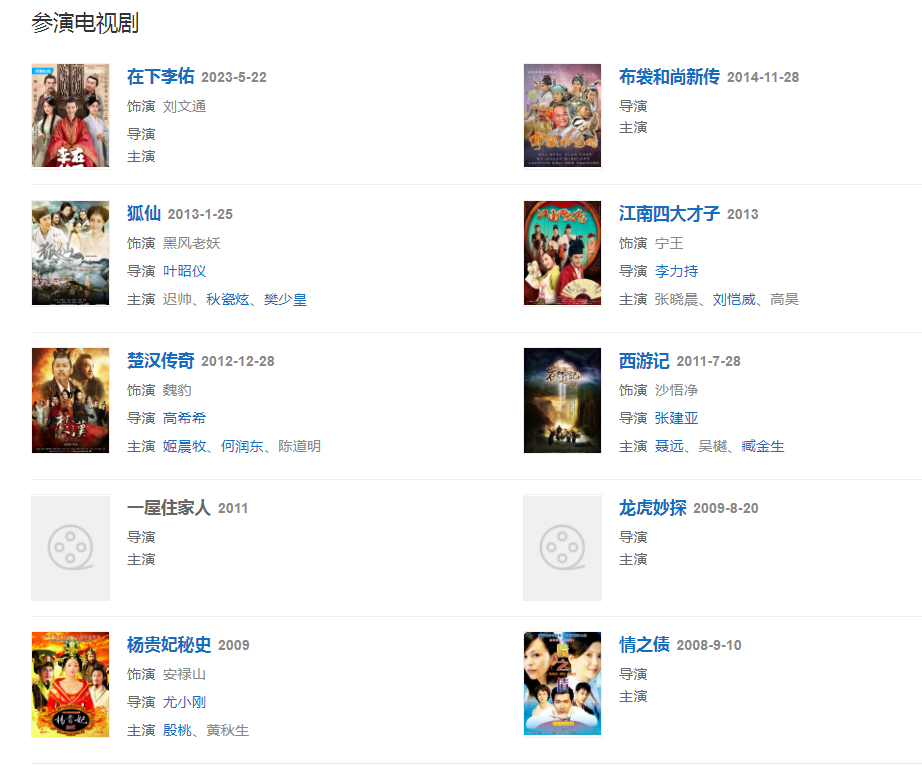 代表作品:九品芝麻官、西游記、天外飛仙、水滸傳之英雄本色、色情男女、殺無赦 (2017)